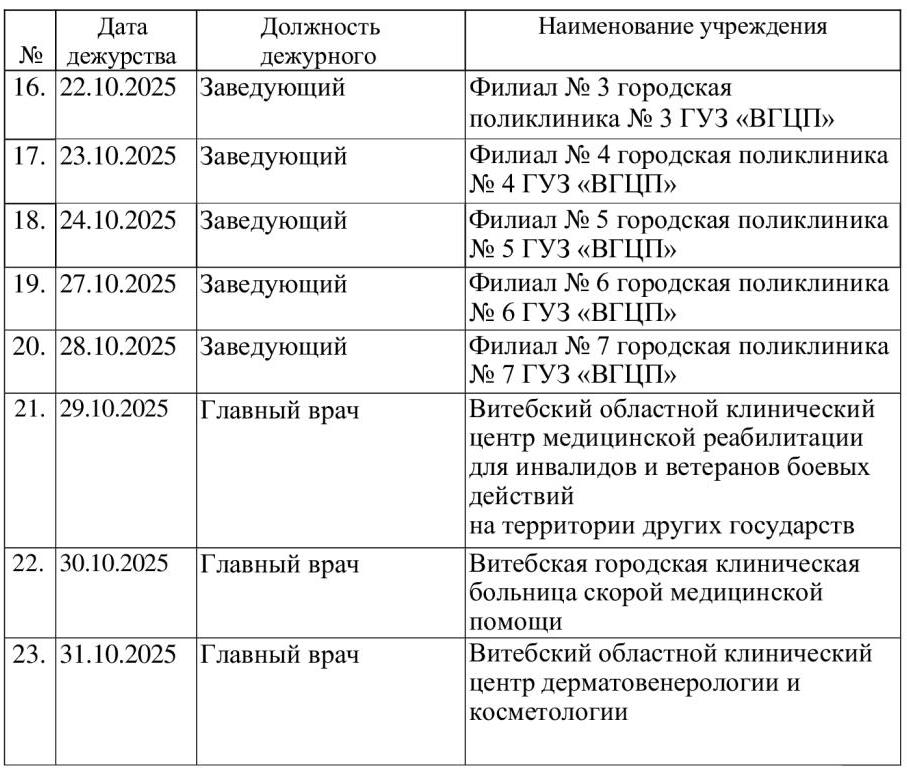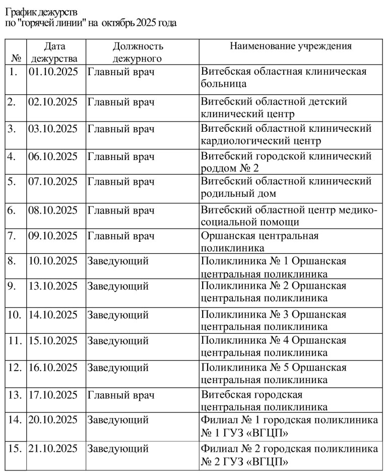 21. | 29.09.2025 | Главный врач | Витебский областной клинический центр пульмонологии и фтизиатрии |