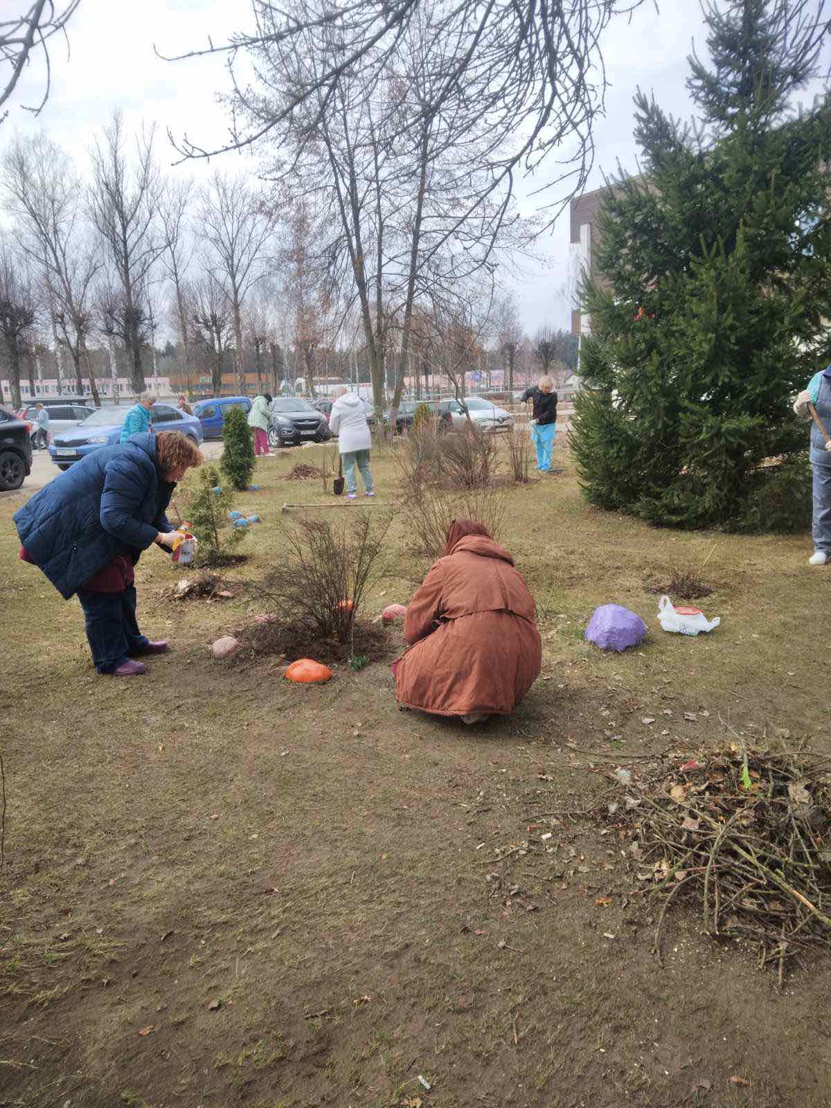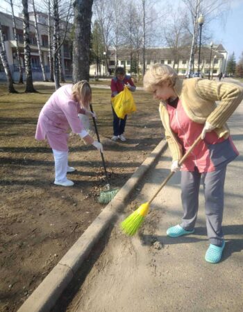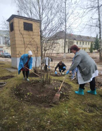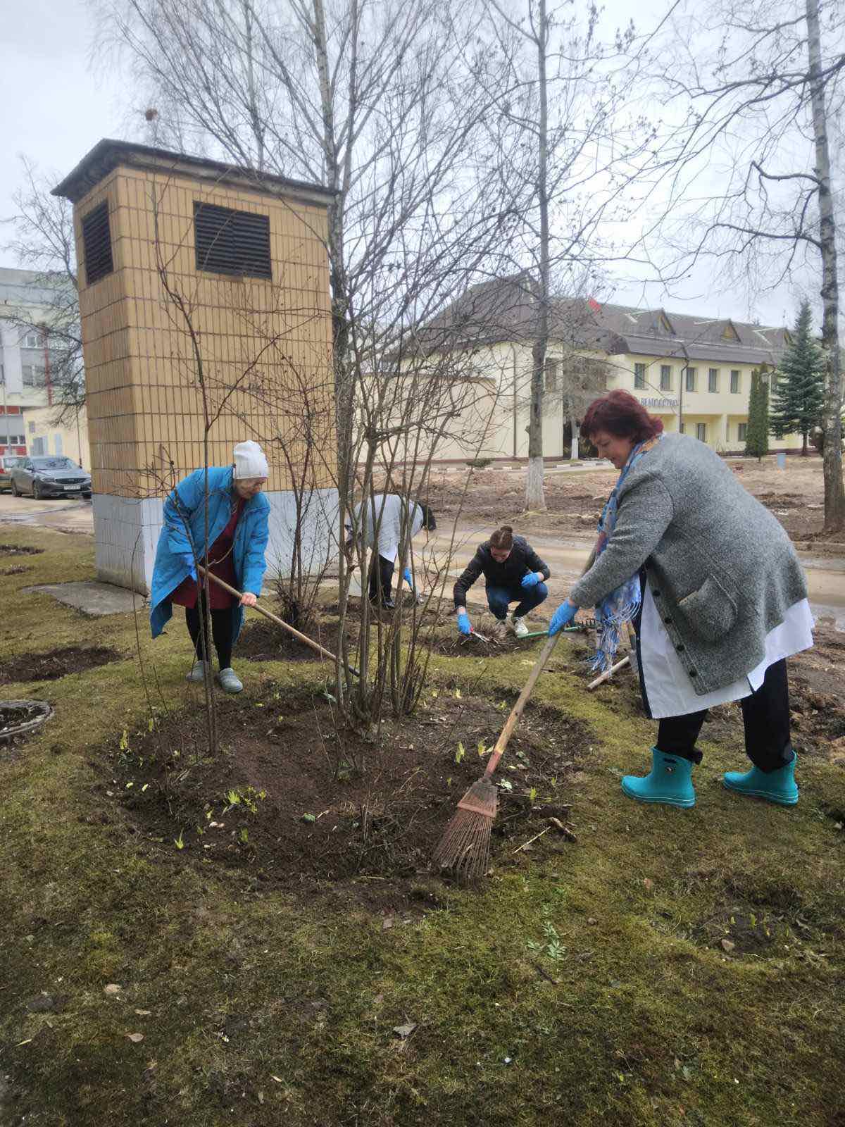 В рамках месячника по наведению порядка на земле и благоустройству сотрудники УЗ «Новополоцкая центральна городская больница» продолжают благоустройство и уборку на закрепленных территориях.