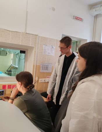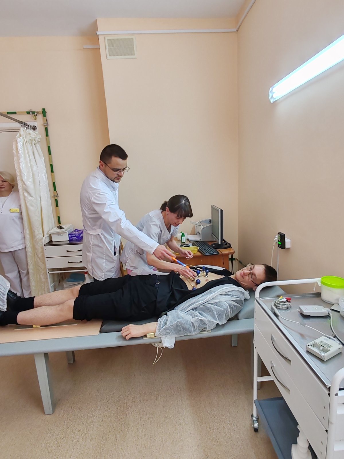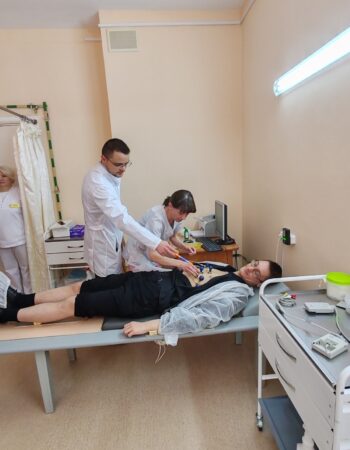 В ходе мероприятия школьники посетили рентгеновское отделение, кабинет МРТ, урологическое отделение, приемное отделение, физиотерапевтическое отделение, кабинет УЗИ, кабинет функциональной диагностики. Ребятам рассказали о востребованных в нашем учреждении специальностях, о современных методах диагностики и лечения пациентов, оборудовании и принципах его работы. Школьники попробовали себя в роли инструктора ЛФК, научились оказывать сердечно-легочную реанимацию и окунулись в работу врача – анестезиолога-реаниматолога, попробовали снять кардиограмму и разобраться в рентгеновских снимках. Огромный восторг и заинтересованность у учащихся вызвало классическое учебное упражнение для будущих хирургов – наложение швов, которое организовал врач – уролог (заведующий) урологическим отделением В.В.Позняк.