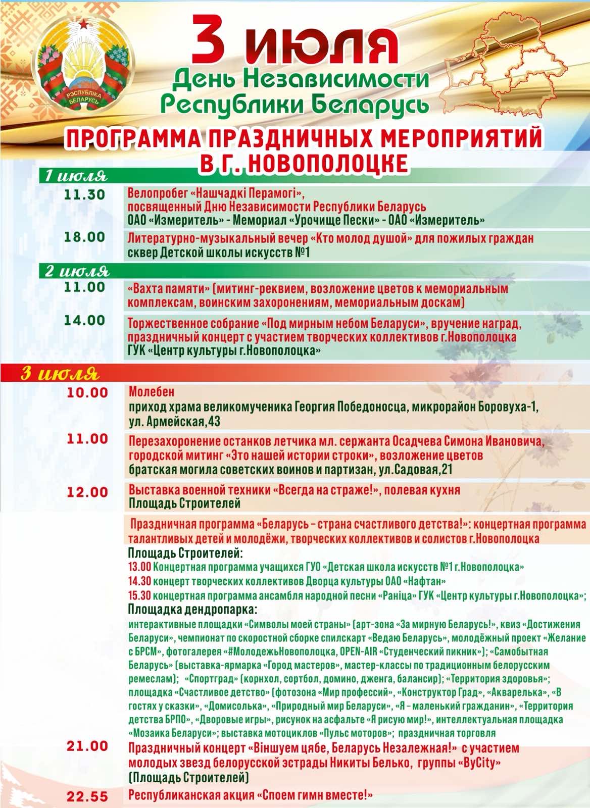 Программа праздничных мероприятий на 3 июля 2025