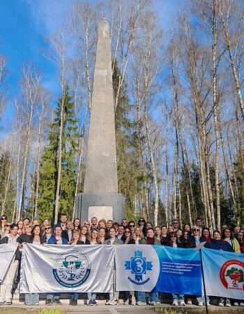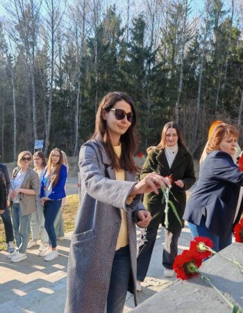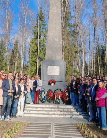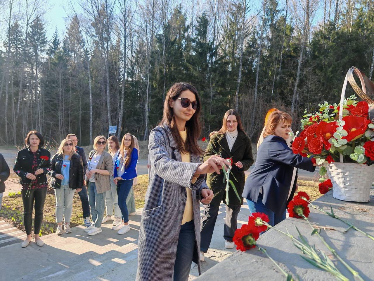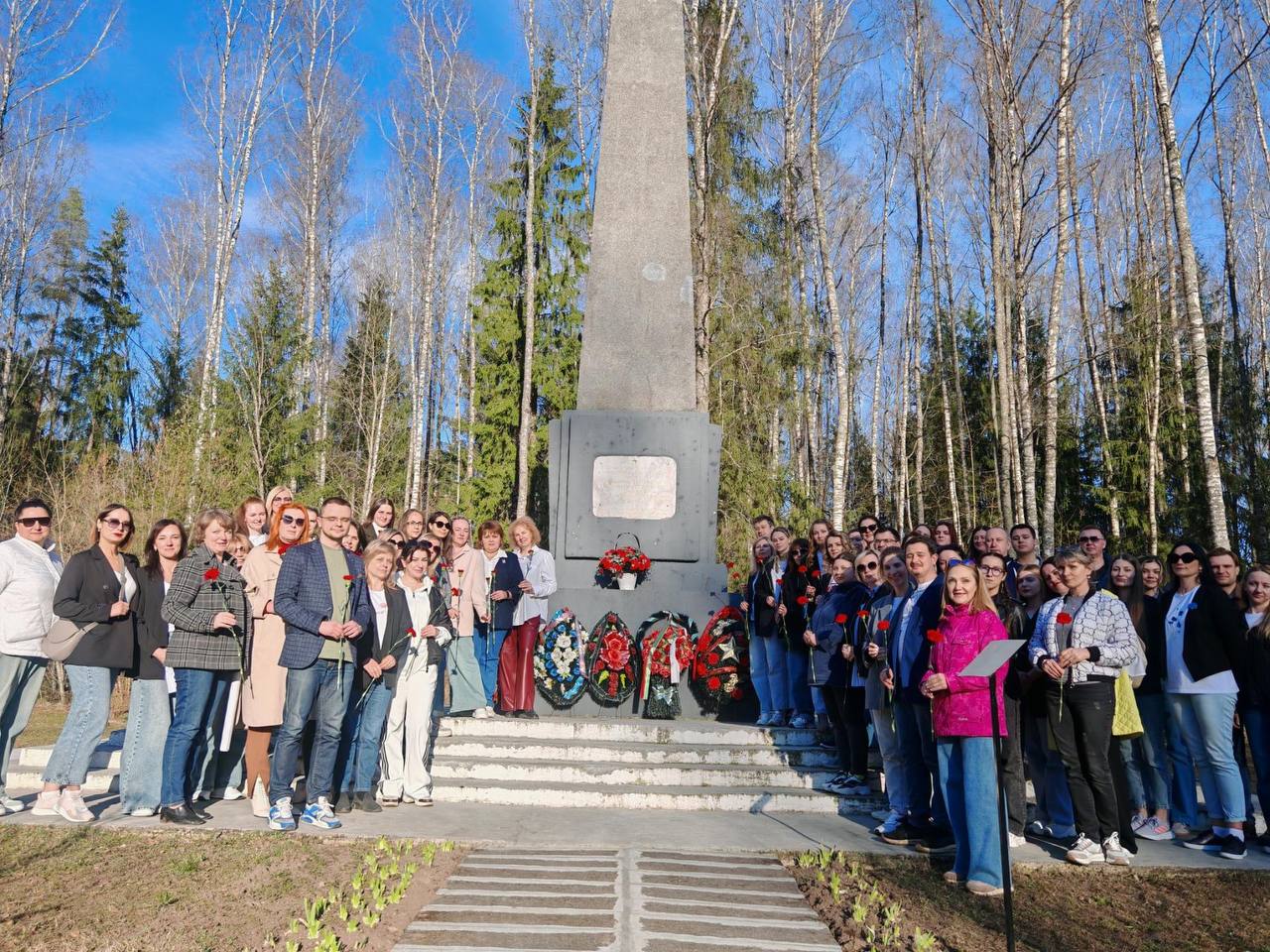 Первый день семинара начался с важной патриотической церемонии — возложения цветов к мемориальному комплексу вблизи д. Прудники Городокского района. Памятник воздвигнут в честь 300 земляков-воинов, погибших на фронтах Великой Отечественной войны.